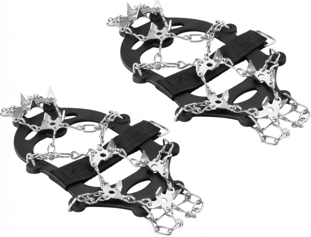 Návleky jsou vybaveny 9 ocelovými hroty o výšce 14 mm, které zajišťují vynikající přilnavost na kluzkých površích. Hroty a řetězy jsou vyrobeny z nerezové oceli, což zaručuje jejich odolnost vůči korozi a dlouhodobé užívání. Silikonová objímka je pružná a trvanlivá, a také zajišťuje jisté přilnutí k botě.