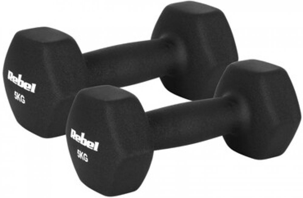 Posilovací činky 2x5kg, REBEL ACTIVE RBA-2330-5, neopren HEX