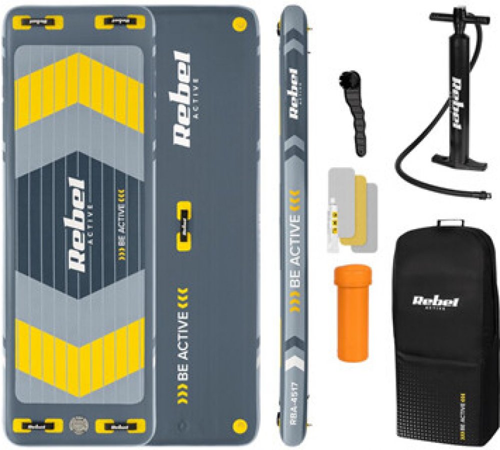 SUP prkno RBA-4517 je dodáváno s ruční pumpou s tlakoměrem, která umožňuje rychlé a efektivní nafouknutí. Prkno je navíc dodáváno s opravným prvkem. Sada se skládá z klíče na ventilek, tří opravných záplat a lepidla, abyste mohli rychle vyřešit jakékoli problémy a vrátit se k pádlování!