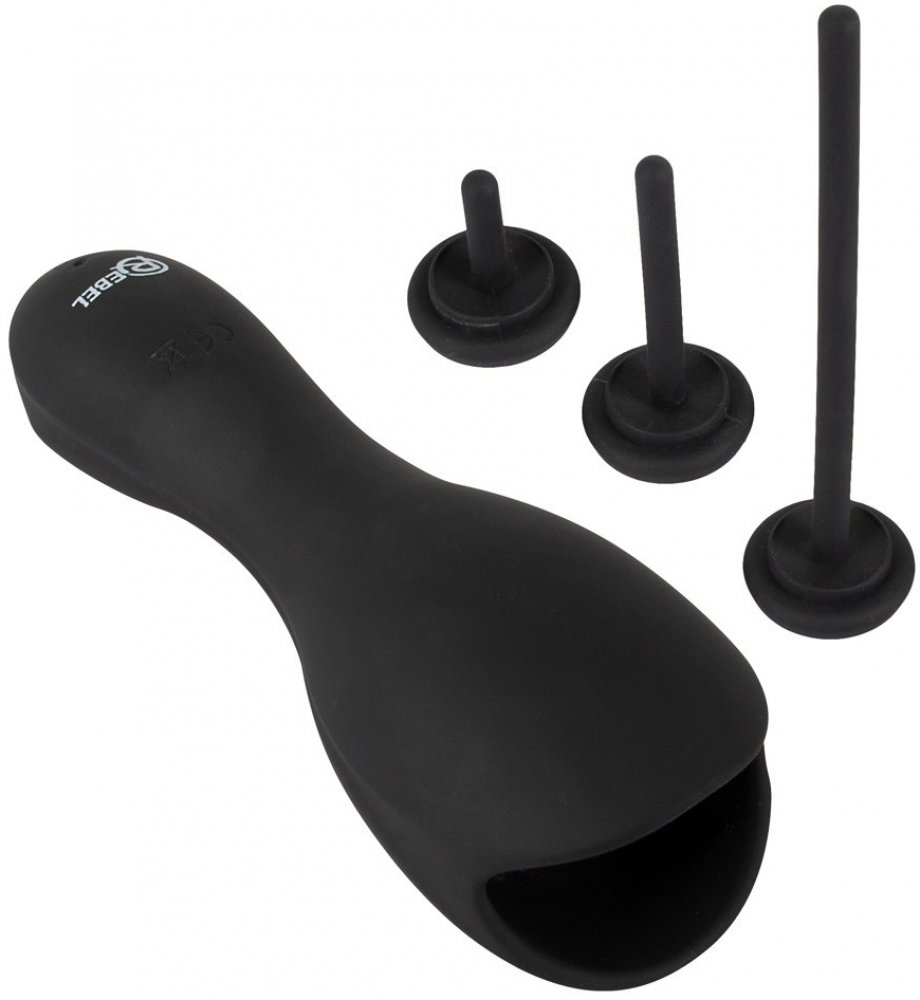 Velmi praktický, kompaktní masturbátor žaludu se 3 připojitelnými dilatátory od společnosti Rebel, který přímo hýčká žalud a uzdičku pomocí brnících vibrací a nesčetných měkkých výstupků. Pro dodatečnou stimulaci močové trubice lze nasadit nebo vyměnit 3 ohebné dilatátory různých délek.