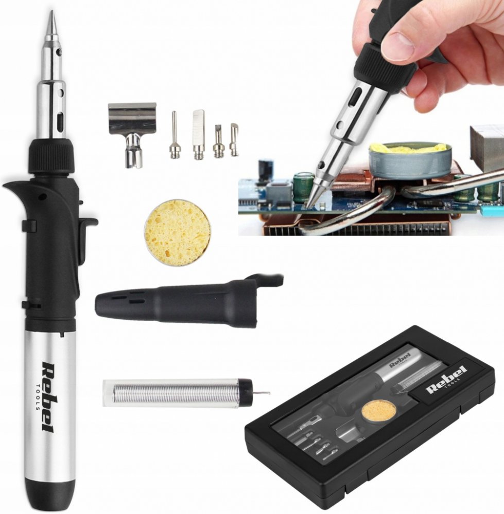 Plynová páječka Rebel je spolehlivý nástroj, který umožňuje přesné a efektivní pájení různých materiálů. Díky své účinnosti a přenosnosti je ideálním řešením pro profesionály i amatérské opraváře a kutily.Široký teplotní rozsah hrotu páječky Rebel – od 200 °C do 500 °C – umožňuje přizpůsobit zařízení různým materiálům v závislosti na vašich potřebách.Páječka Rebel je vybavena příslušenstvím, které umožňuje nejen pájet, ale také pálit dřevo, odstraňovat barvy, tavit a smršťovat materiály.Objem plynové nádržky je 17 ml, což zaručuje přibližně 30 minut nepřetržitého provozu. Kompaktní velikost a přenosnost plynové páječky Rebel dále zvyšují její snadnost použití a umožňují ji používat kdekoli.Rozsah teplot hrotu: 200 °C - 500 °CMaximální teplota plamene: 1300 °CProvozní doba (s plnou plynovou nádržkou): cca. 30 minutObjem nádržky: 17 ml / 2,8 gDélka s hrotem: 25 cmHmotnost sady: 0,5 kg
