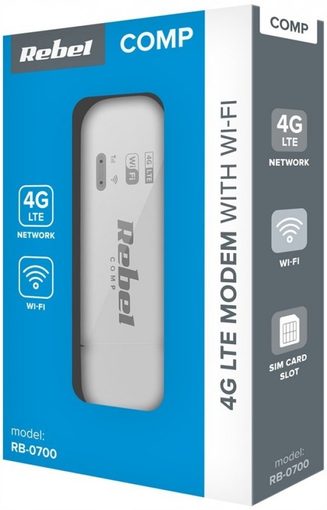 ModemTechnické parametry:- Wi-Fi standard: 802.11 b/g/n- Zabezpečení: WEP, WPA-PSK, WPA2-PSK- Podpora až 10 současných uživatelů- Procesor: ASR 1803- Wi-Fi čipset: ASR5803- Podporované operační systémy: Windows XP, Vista, 7, 8, 10- Síť: FDD-LTE/TDD-LTE/WCDMA- USB port: 2.0- Slot pro SIM kartu- Provozní teplota: -10°C ~ 45°C- Skladovací teplota: -30°C ~ 80°C- Skladovací vlhkost: 5% ~ 95 %- : 5 V / 1 A- Rozměry: 90 x 29 x 10 mm- Hmotnost: 23,5 g