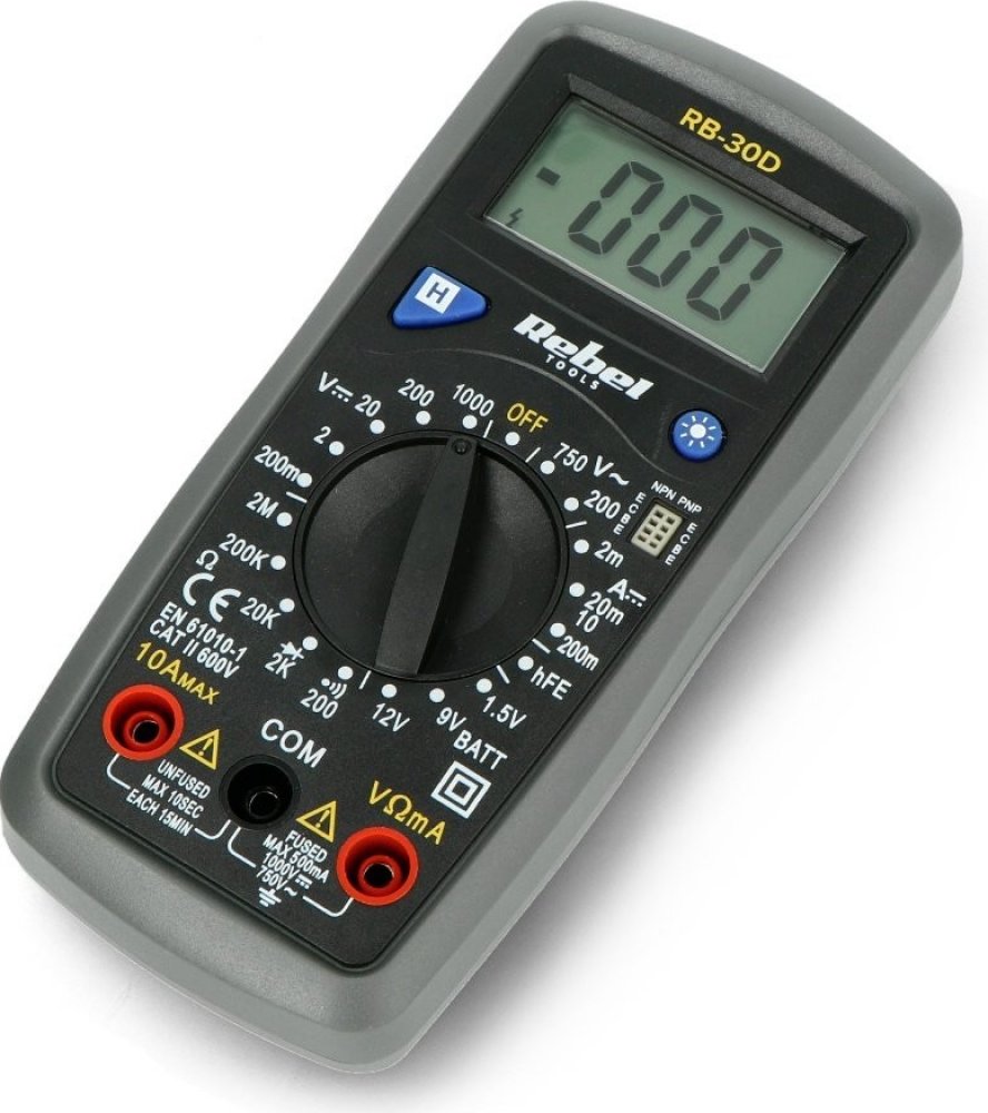 Univerzální měřič REBEL RB-30D je kompaktní a multifunkční měřicí přístroj, který je ideální pro profesionální i domácí použití. Díky svým širokým možnostem měření a ergonomickému designu je nepostradatelným nástrojem v dílně každého elektrikáře nebo elektrotechnika.