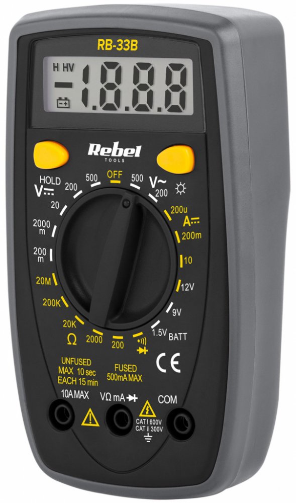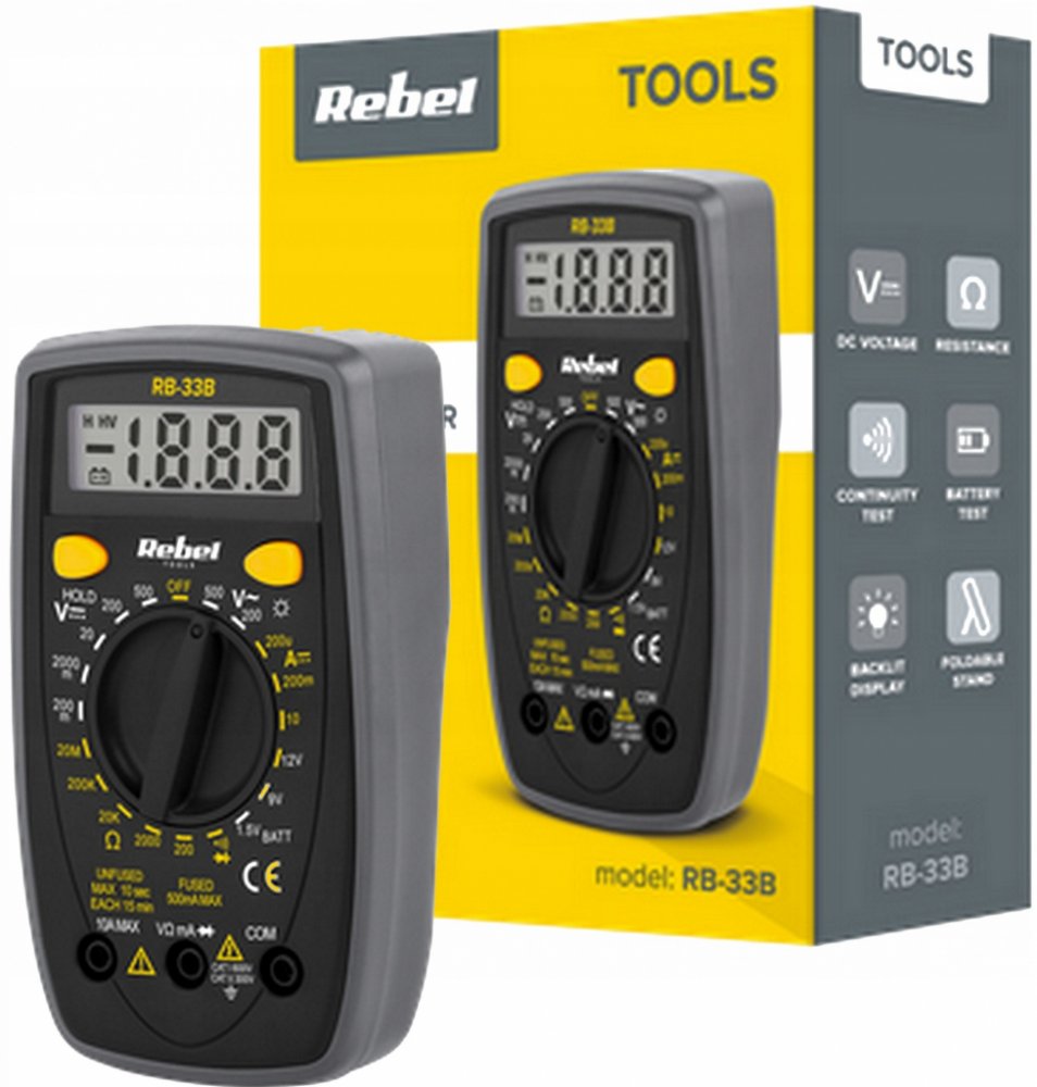 Tento digitální multimetr od společnosti Rebel je ideální pro měření různých elektrických parametrů. Je vyroben z kvalitních součástek a je navržen tak, aby poskytoval přesné údaje až do 1000 V. Je vybaven velkým displejem LCD s režimem duálního napájení, funkcí podržení dat a řadou dalších funkcí, které usnadňují práci. Díky svému lehkému a kompaktnímu tělu je ideální pro profesionální i domácí použití. Je to skvělý způsob, jak řešit problémy s obvody, kontrolovat proud, napětí, odpor a další. Nebojte se ani o bezpečnost, tento multimetr je bezpečný pro použití i na obvodech pod napětím. S tímto digitálním multimetrem Rebel získáte přesné údaje pro své projekty v oblasti elektroniky.
