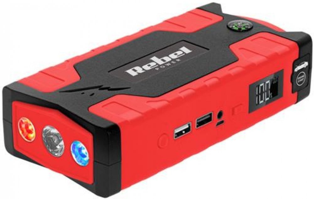Jump starter Rebel - power banka se startovacími kabely Stalo se vám někdy, že se vám vybila baterie v autě, když jste to nejméně čekali, a nebyl nikdo, kdo by vám pomohl? Skokový startér ze série Rebel Power vám díky své široké funkčnosti pomůže vyhnout se takovým nepříjemným překvapením. Dbejte proto na to, aby se toto malé auto startovací zařízení stalo již dnes trvalou součástí výbavy vašeho vozu. Startovací power banka Jump starter Rebel je powerbanka s funkcí startování auta. Zařízení je vybaveno článkem 10 000 mAh a sada kromě kabelu 3 v 1 (micro USB, USB-C, Lightning) pro nabíjení např. smartphonu obsahuje také propojky, které vám umožní skokový start slabá baterie v autě, motorovém člunu nebo čtyřkolce v případě nouze. K této mobilní baterii je dodávána i autonabíječka a síťová nabíječka, které dále rozšiřují možnosti zařízení a mohou být velmi nápomocné v případě poruchy. Power banka s kompresorem Pokud máte ve svém voze powerbanku s funkcí Rebel start, můžete si být jisti i svými pneumatikami. Díky tomu v případě poklesu tlaku v pneumatikách nebudete muset nervózně hledat stanici, kde ji doplníte. Kompresor, který je součástí sady, vám umožní čerpat vzduch za jakýchkoliv podmínek. Díky připojeným hrotům lze zařízení s úspěchem použít i k nafouknutí matrace, míče nebo bazénu. Za všech podmínek Startér Rebel vystoupí za každého počasí. Nebojí se mrazivých dnů, kdy teploty dosahují -50°C, ani letních veder - přístroj si poradí s teplotami až +65°C. Zařízení a jeho příslušenství je zabaleno do malého kufříku, který nezabere mnoho místa v kufru.