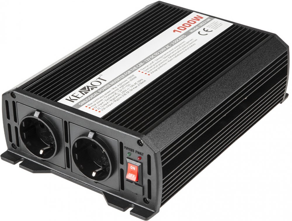 Měnič Napětí REBEL 12V/230V 1000W se dvěma zásuvkami typu F