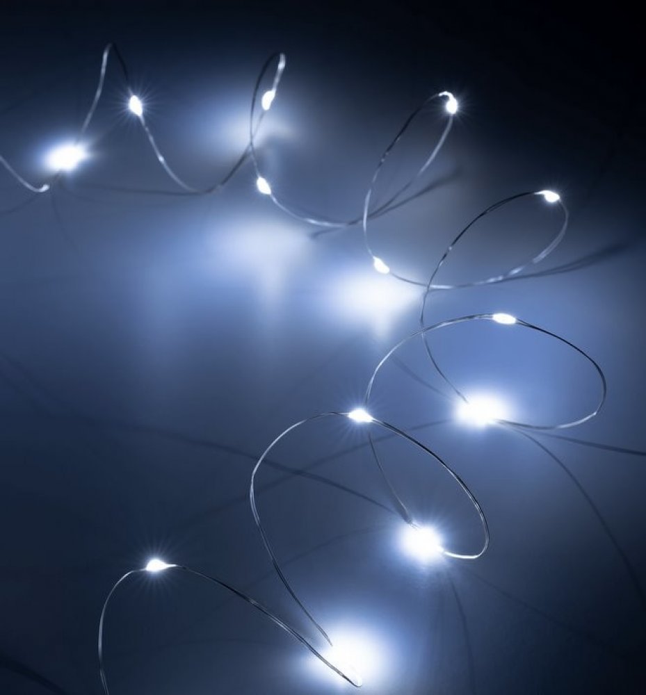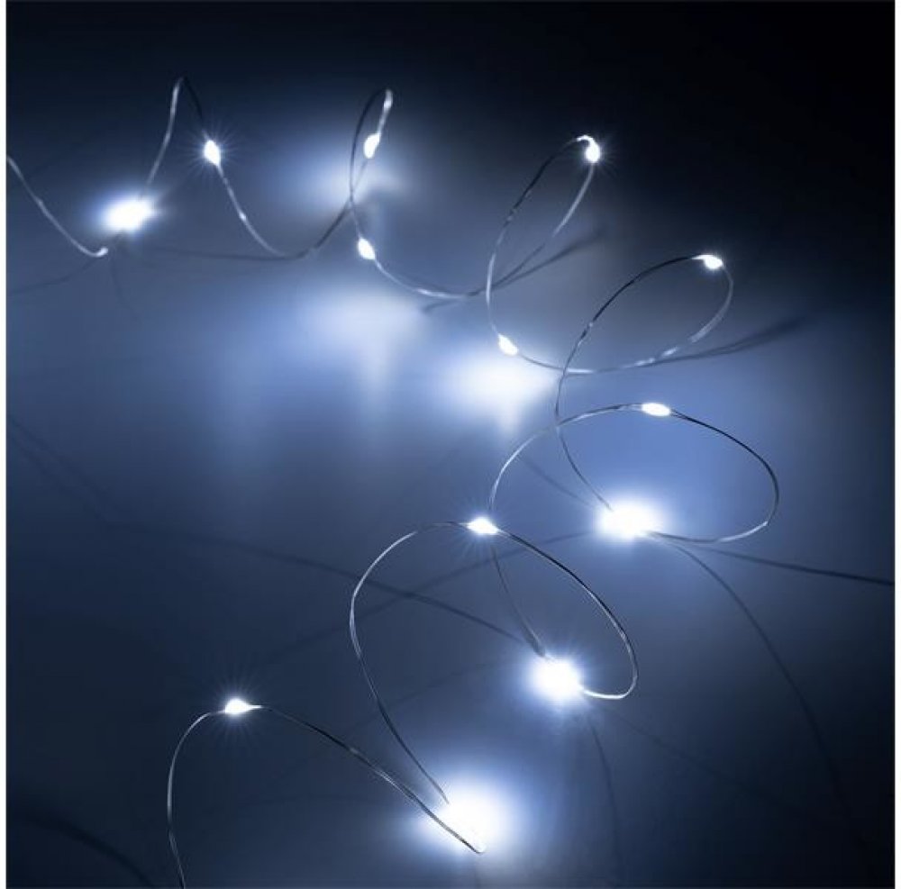 20 mini LED drátových světel Drátěné lampy ze série Rebel Lights jsou nejen praktickým světelným zdrojem, ale také stylovým dekorativním prvkem. Sada se skládá z 20 mini LED, které vytvářejí krásné a jemné světlo. 1,2 metru dlouhá šňůra s diodami umístěnými každých 10 cm zajišťuje rovnoměrné a efektivní rozložení světla. Ideální pro každou příležitost LED lampy na drátě Rebel vyzařují konstantní studené bílé světlo. Tento jemný světelný efekt vytváří kouzelnou atmosféru. Z tohoto důvodu bude miniLED struna perfektní pro různé příležitosti. Uplatní se na vánoční výzdobu, při rodinných oslavác