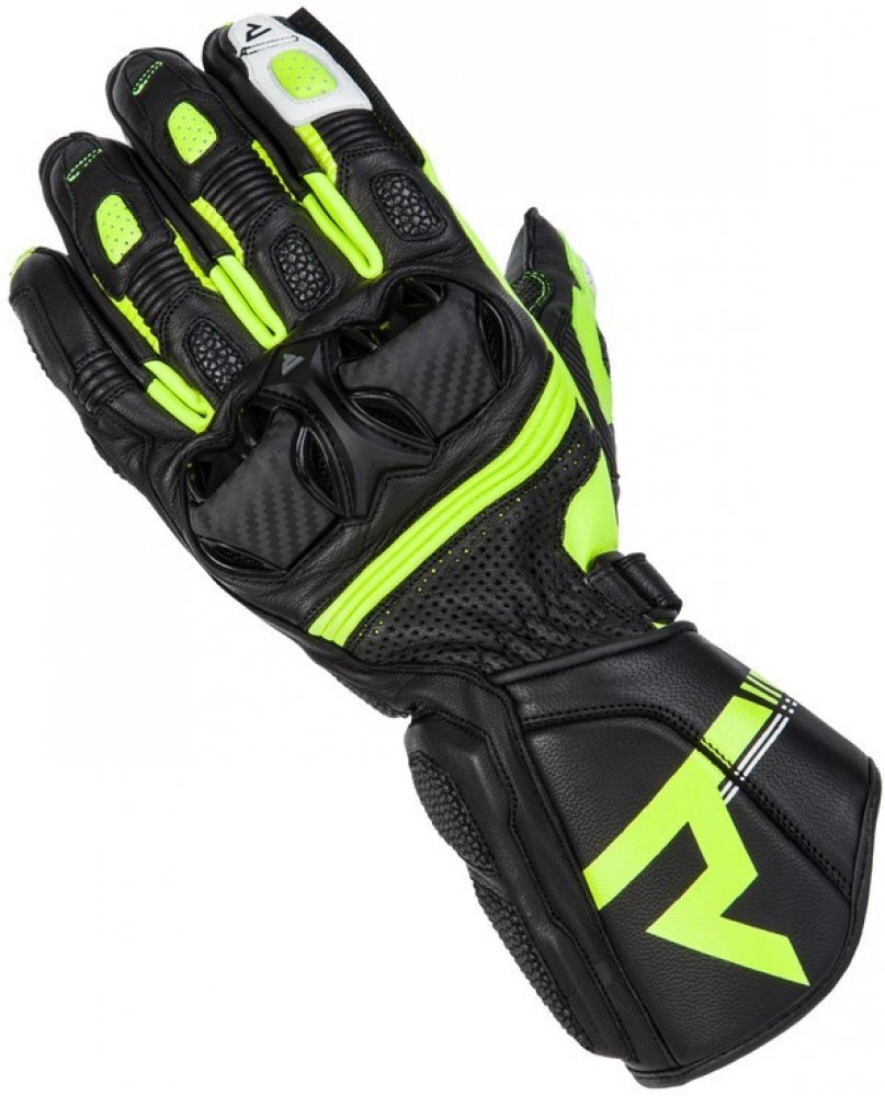 Vyrobeny kombinací kozí kůže, Cordura Dupont 500D, SuperFabric®. Prodyšná a pohodlná podšívka. Voděodolná membrána Sympatex®. Chrániče SuperFabric® na prstech, dlani a manžetě. Plastový chránič kloubů. Všité panely z pěny SAS-TEC absorbující sílu nárazu. Zdvojená vrstva materiálu na vnitřní straně dlaně. Kožené stretchové panely pro větší komfort. Perforace na dlani a na prstech pro optimální vent...