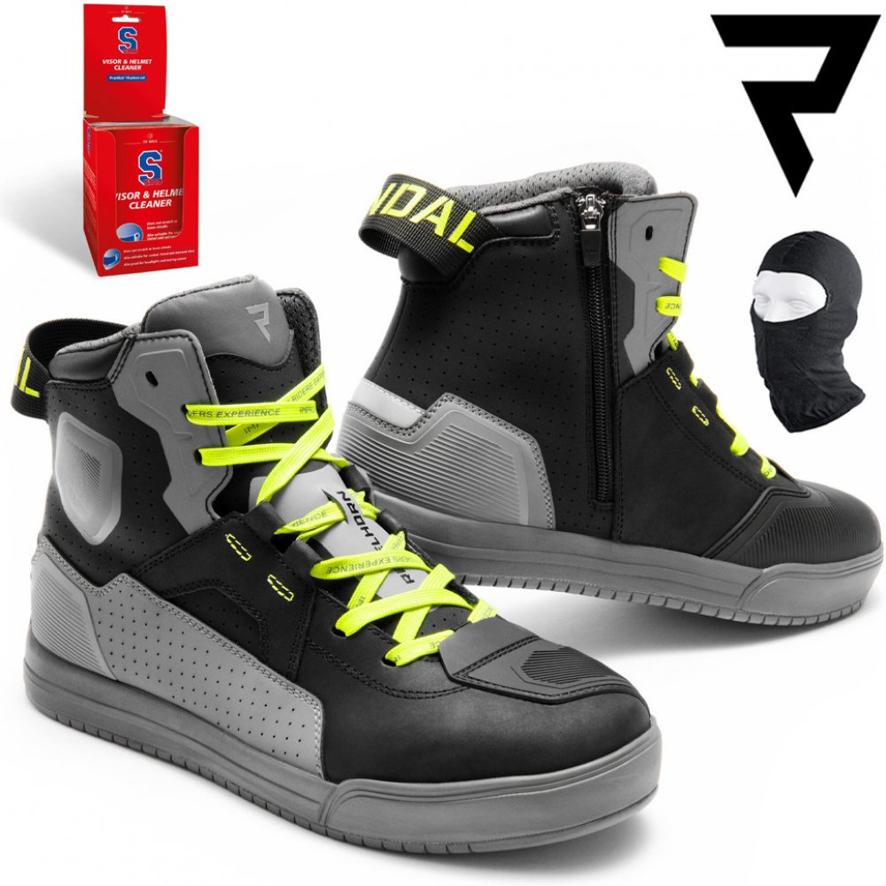 Moto boty Rebelhorn Vandal mají perforované kožené panely a 3D síťovanou podšívku pro lepší ventilaci. Vyztužená podrážka a tvrdé chrániče paty a kotníků poskytují prvotřídní ochranu. Boty Vandal jsou vyrobeny z hovězí kůže s měkkým povrchem pro vysoký pocit pohodlí.