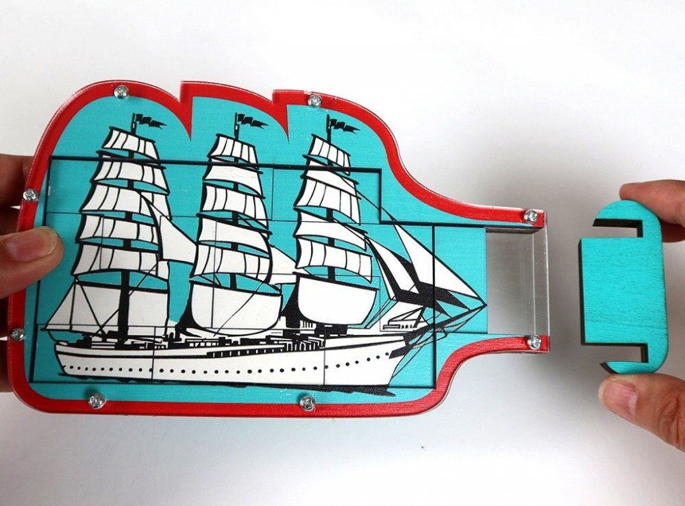 Procvičte si dedukci a obratnost. Opatrně vytřepte všechny dílky ven z lahve. Pomocí jemných doteků je znova poskládejte uvnitř lahve a vytvořte obrázek. Co myslíte, bude se loďka znova plavit, nebo dostanete mořskou nemoc?