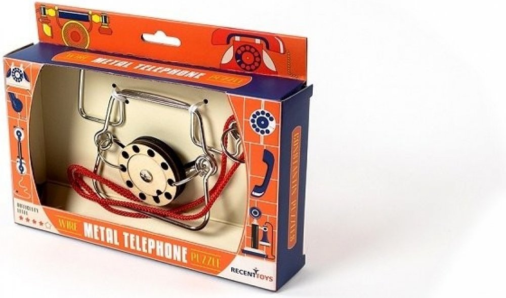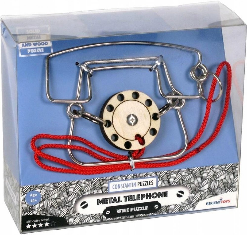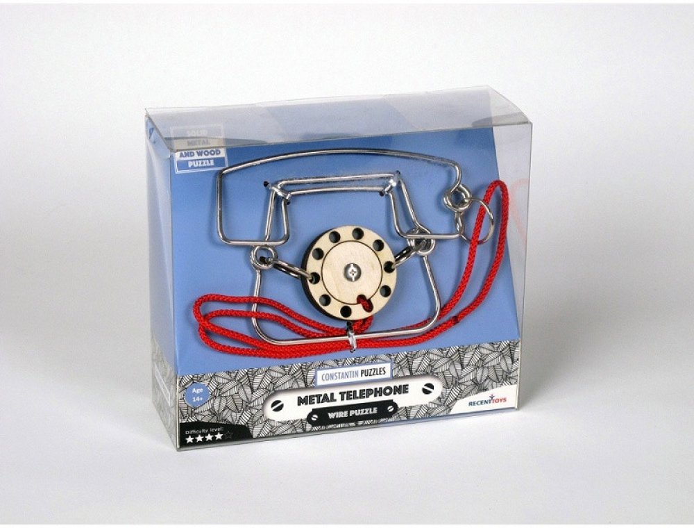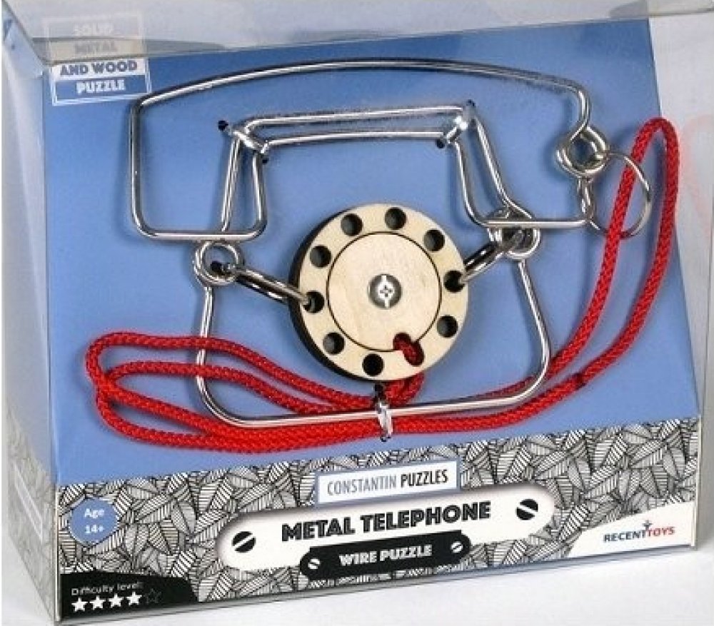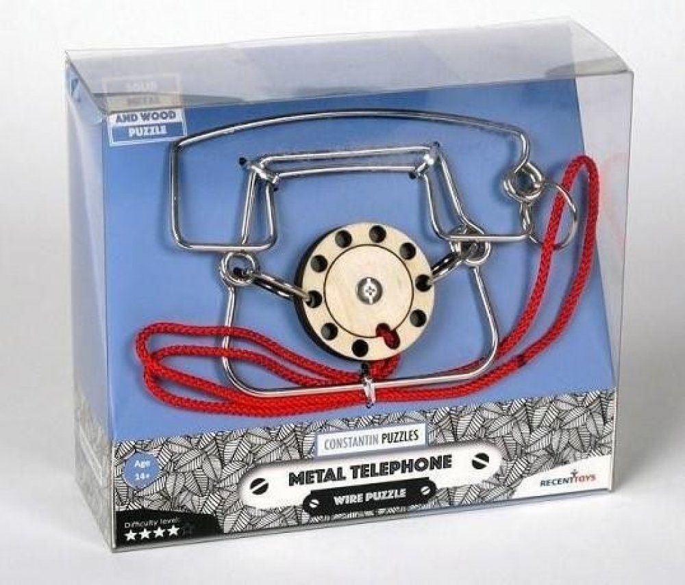 Hlavolam RECENTTOYS Metal Phone: RECENTTOYS Metal Phone je hlavolam vhodný od 14 let. Jeho autorem je Jean-Claude Constantin, který se zaměřuje právě na hlavolamy, puzzle z kovu i dřeva a různé kouzelné triky. Principem kovového hlavolamu ze série Recent Toys Constantin Puzzles je oddělit sluchátko od ciferníku. Tento hlavolam je kvalitně zpracován a dárkové balení potěší nejen fanoušky hlavolamů, ale také všechny, kdo mají rádi logické a strategické hry a zároveň jsou šikovní na jemnou motoriku rukou.