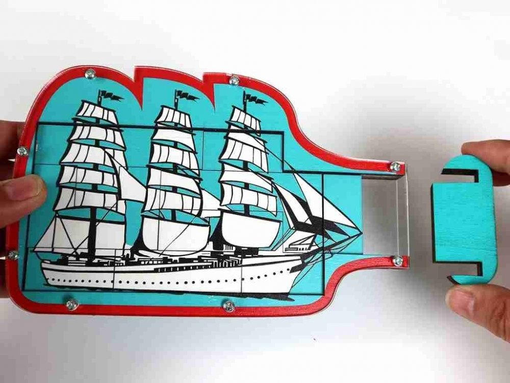 Procvičte si dedukci a obratnost. Opatrně vytřepte všechny dílky ven z lahve. Pomocí jemných doteků je znova poskládejte uvnitř lahve a vytvořte obrázek. Co myslíte, bude se loďka znova plavit, nebo dostanete mořskou nemoc?