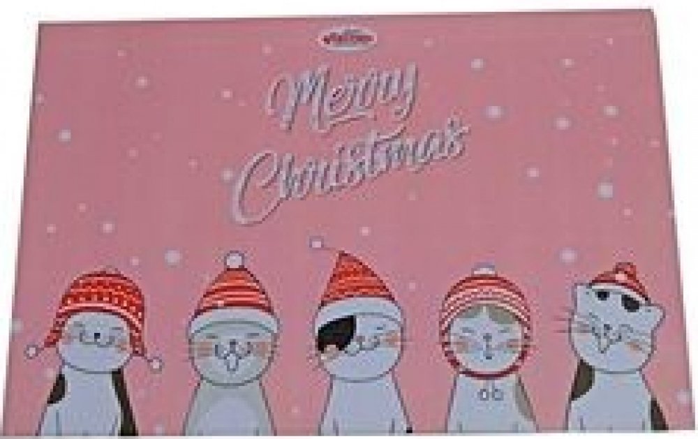 Plastová podložka pod misku psa nebo kočky, s vánočním motivem, zamezí zašpinění podlahy při krmení. Z obou stran je zcela hladka pro snadné čištění. Přiložené lepicí protiskluzové body se nalepí zespodu, aby zabránily pohybu podložky po podlaze. Je částečně ohebná, omyvatelná.