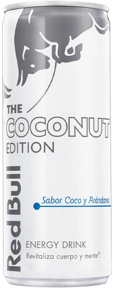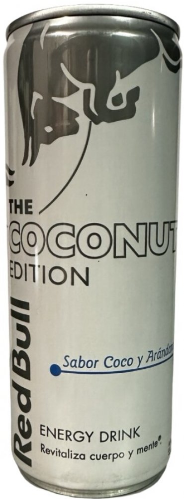 Energetický nápoj Red Bull s příchutí kokosu a borůvek. Složení: sycená voda, sacharóza, glukóza, kyselina citronová, taurin (0,4%), regulátor kyselosti (citrát sodný), kofein (0,03%), vitamíny (niacin, kyselina pantothenová, B6, B12), aroma, stabilizátor (glycerinester, sacharóza), barvivo (karamel), umělá barviva (brilantní modř FCF*). *Může mít neblahý vliv na činnost a pozornost dětí. Nevhodn...