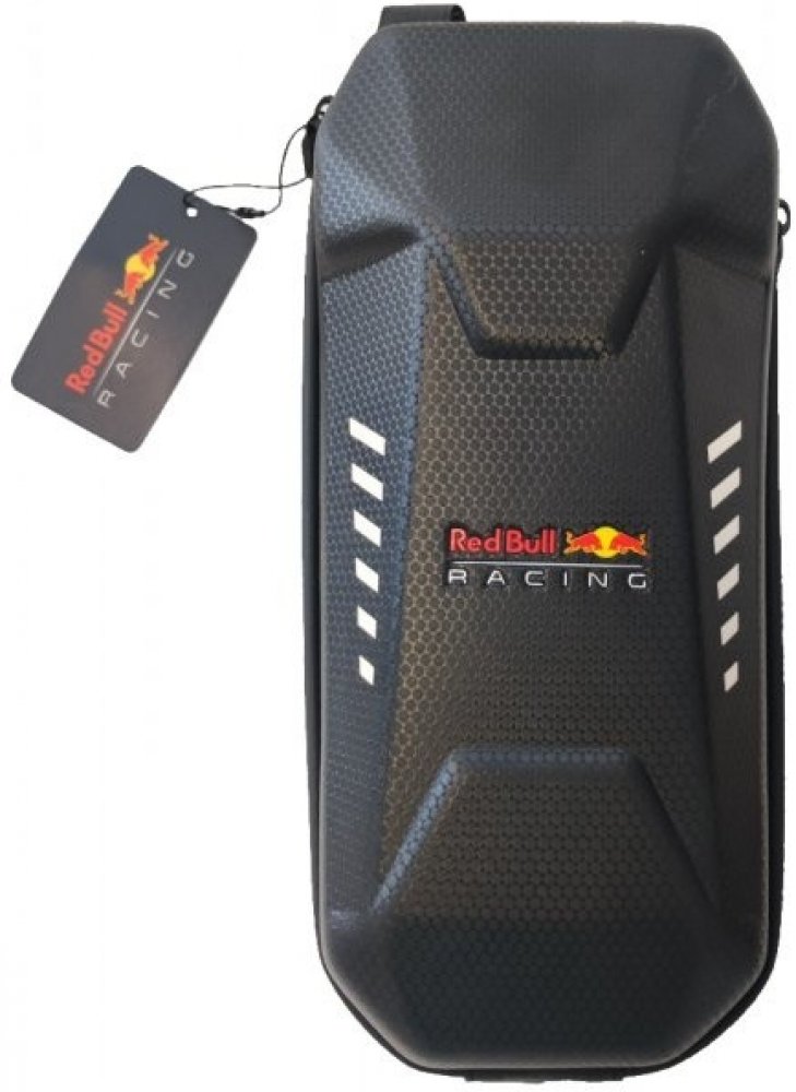 Voděodolná přední brašna na řídítka RED BULL - jednoduchá a odolná brašna na drobné předměty z EVA materiálu, vnitřní kapsy z MESH, snadné upevnění na řídítka koloběžky pomocí 4 suchých zipů (2 na řídítkách a 2 na řídící tyči), voděodolná a nárazuvzdorná konstrukce s překrytým oboustranným zipem, reflexní prvky pro zvýšení bezpečnosti a viditelnosti v noci. Velikost: 29x14,5x13cm.