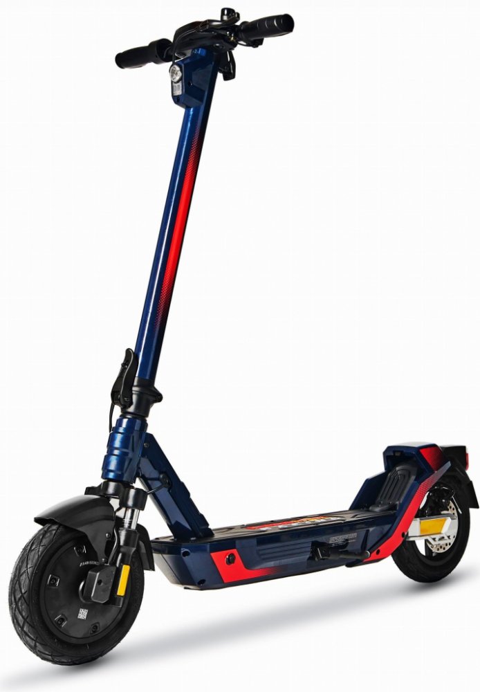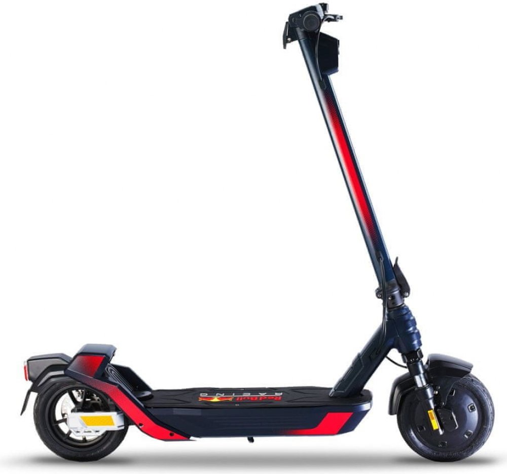 Elektrokoloběžka Red Bull TURBO je sportovně laděná koloběžka s 10“ bezdušovými koly, kdy poháněné je to přední. Obě kola jsou samozřejmě odpružená.