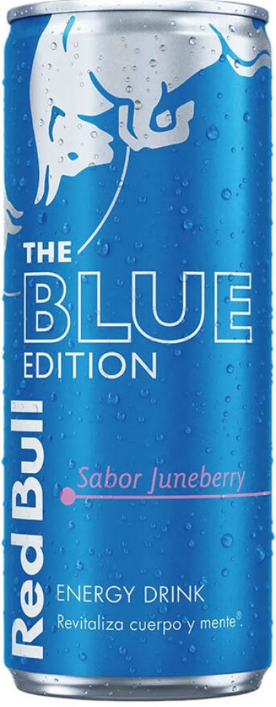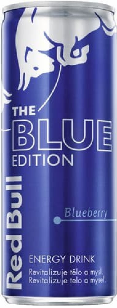 Energetický nápoj Red Bull s příchutí muchovníku ve verzi pro Španělsko. Složení: voda, sacharóza, glukóza, kyselina (kyselina citronová), oxid uhličitý, taurin (0,4 %), regulátor kyselosti (citronany sodné), kofein (0,03 %), vitamíny (niacin, kyselina pantothenová, B6, B12), aromata, barviva (anthokyany, brilantní modř FCF*). *Může mít neblahý vliv na činnost a pozornost dětí. Nevhodné pro děti,...