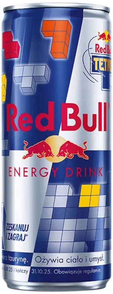 Energetický nápoj Red Bull s klasickou příchutí v limitované edici k oslavě 30. výročí legendární hry Tetris!