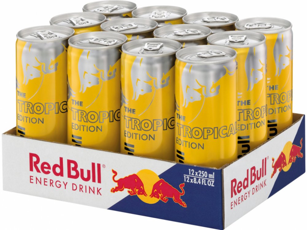 Změna barevného stylu šablony pro potraviny Red Bull Tropical editionTropické ovoce, 12× 250 ml Red Bull Tropical edition představuje nealkoholický sycený nápoj, který vás potěší svojí příchutí tropického ovoce. Obsahuje taurin, kofein i vitamíny B6 a B12. Ve 100 ml se ukrývá 198 kJ a 11 g sacharidů. Praktické balení v plechovce o objemu 250 ml je ideální i na cesty. Klíčové vlastnosti nápoje Red ...