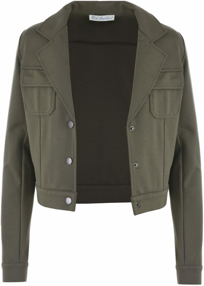 LEHKÁ PODZIMNÍ BUNDA KHAKI Red Button: moderní lehká podzimní bunda v khaki barvě luxusní strečový materiál a kratší střih bundy s klopovým límcem přední zapínání na kovové cvoky lehce zúžený spodní lem dlouhé rukávy s manžetami se cvoky kapsy: 2x náprsní bez zapínání s klopou slabší přechodná bunda bez podšívky kombinujte s khaki kalhotami stejné kolekce modelka vel. XS - 174 cm (87-60-87)