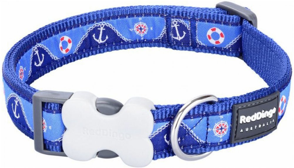 Obojek Red Dingo Nautical tmavě modrý, vzor kotva
