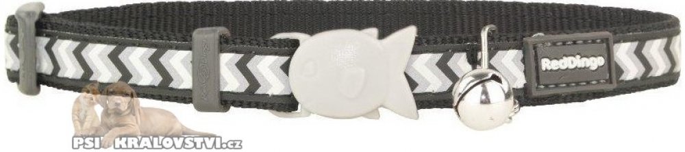 Obojek pro kočky - Ziggy Reflexní - Černá Velikost obojku: 20 - 32 cm. Šířka 12 mm. Obojky Red Dingo jsou vyrobené z kvalitního nylonového popruhu. Okraje jsou hustě tkané pro ještě větší odolnost vůči oděru. Našitá reflexní stuha velmi dobře odráží pouliční světlo, světla aut, cyklistů apod. Při dopadu světla na obojek dochází k jeho výraznému odrazu od reflexních ploch Ziggy. Reflexní řada výrobků Red Dingo výrazně přispívá k bezpečnosti Vašich čtyřnohých kamarádů nejen za šera a tmy. S reflexními výrobky Red Dingo budou originální a budou vidět! Obojky jsou vybaveny originální bezpečnostní plastovou sponou Fish Clip ve tvaru rybičky. Spona se sama rozepne při větším zatížení, když by kočka někde uvízla. Obojky jsou vybaveny malou rolničkou, díky které ji ostatní zvířata dobře uslyší. Rolnička jde v případě potřeby sundat. Zakončení popruhu je pod úhlem 20 stupňů, čímž je dosaženo maximálního komfortu pro kočku.