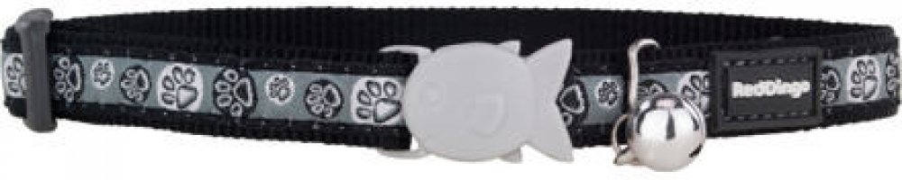 Obojek Red Dingo pro kočky s obvodem krku 20 - 32 cm. Šířka popruhu 12 mm. Vzo Paw Impressions Black.Velikost