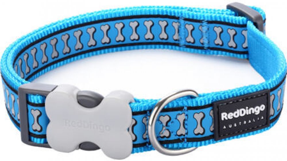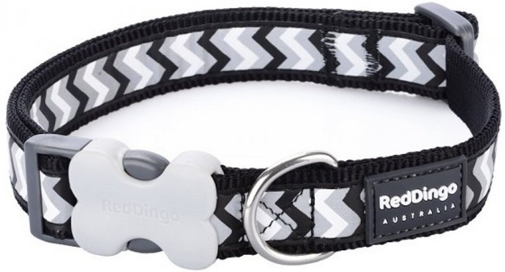 Obojek Red Dingo pro psy s obvodem krku 24 - 37 cm. Šířka popruhu 15 mm. Vzor reflexní Ziggy. Barva středně modrá.