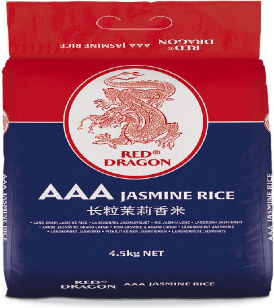 Red Dragon Dlouhozrnná jasmínová rýže - 4,5 kgUžijte si bohatou vůni a nadýchanou texturu dlouhozrnné jasmínové rýže Red Dragon, která pochází z Kambodže. Tato prémiová rýže je ideální pro asijská jídla, restované pokrmy i každodenní vaření.Vlastnosti:✅ Aromatická a chutná jasmínová rýže