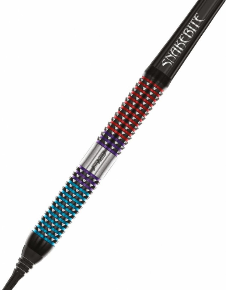 Softové šipky Red Dragon Peter Wright Snakebite Spirit jsou wolframové šipky (Premium Tungsten Alloy) s barrely v dokonalém moderním designu, který je ztělesněním Peterova stylu a vášně. Barrely mají originální drážkování, podtržené modrou, fialovou a červenou barvou. Barrely jsou doplněny nylonovými násadkami Nitrotech a letkami Red Dragon.