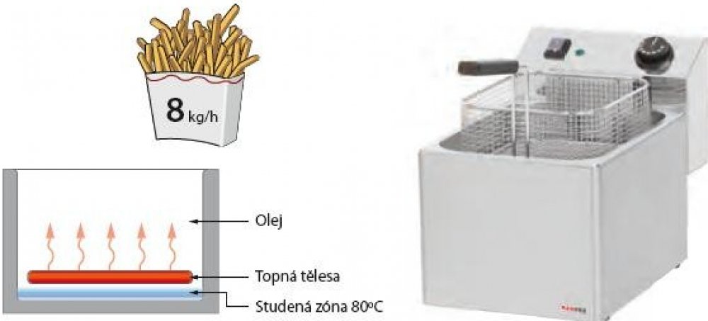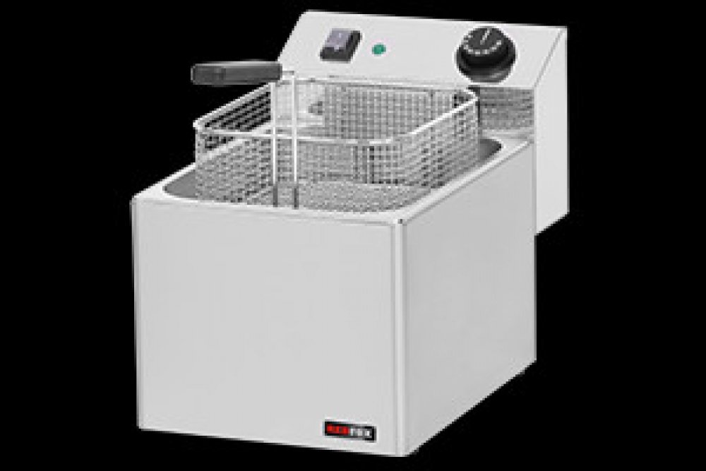 Elektrická fritéza FE-8 E v celonerezovém provedení. Fritéza je opatřena speciální úpravou nerezové topné spirály. Přístroj je vybaven kontrolkou chodu a vyhřátí. Fritéza F-8 je český výrobek vhodný do restaurací, fast- foodů a dalších gastronomických zařízení.