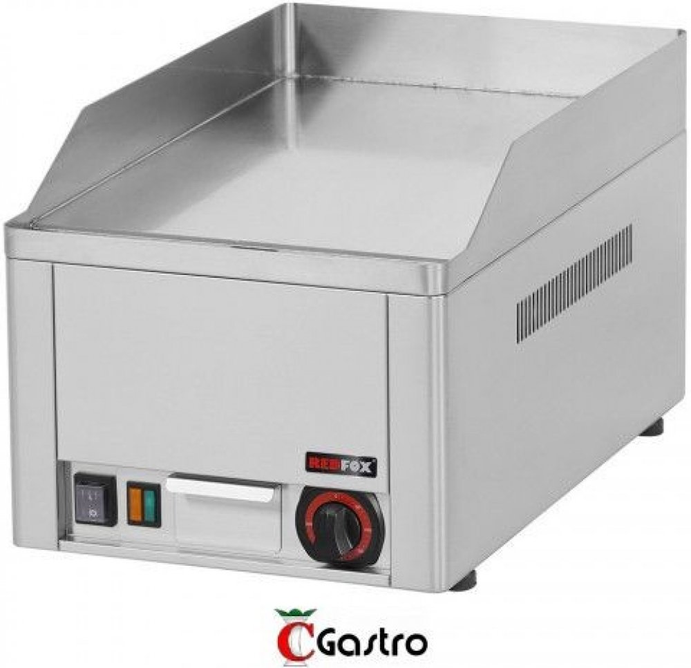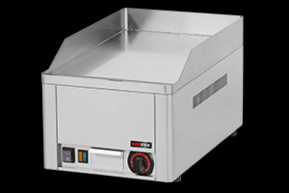 Elektrická grilovací deska FTHRC 30E hladká, rozměr chromované desky 32x48 cm. chromované provedení zajišťuje vynikající vedené tepla a snadné čištění. Rovnoměrné rozložení tepla, kontrolky chodu nahřátí. Bez podestavby a odnímatelného lemu. Deska obsahuje zásuvku na odpadní tekutiny.