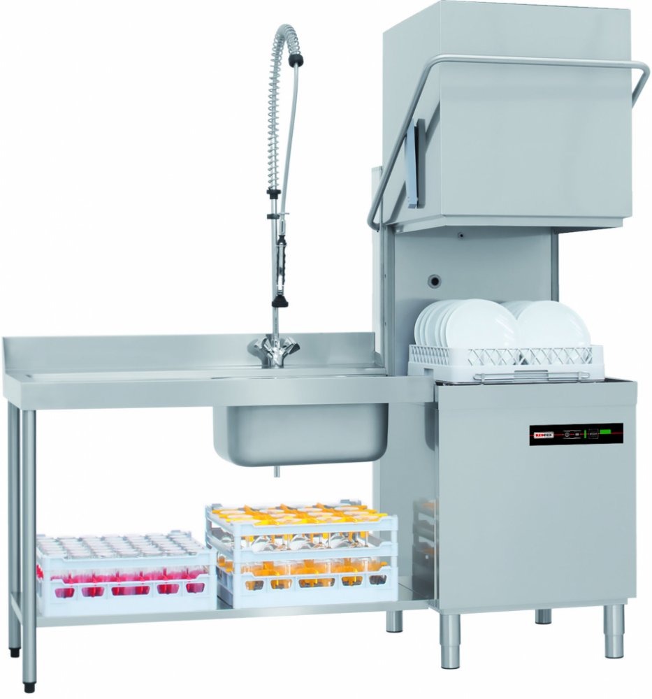 profesionální jednoplášťová průběžná myčka nádobí v celonerezovém provedení. mytí je uskutečňováno vodou o teplotě 60 °c, která je přes filtry čerpána do vany. oplachová voda z bojleru o teplotě 80 °c je vytlačována tlakem přiváděné vody.oschnutí talířů je zajištěno rozdílem teploty oplachové vody a okolního vzduchu, čímž dojde k odpaření vody z nádobí. při mytí talířů je nutné odstranit hrubé neč...