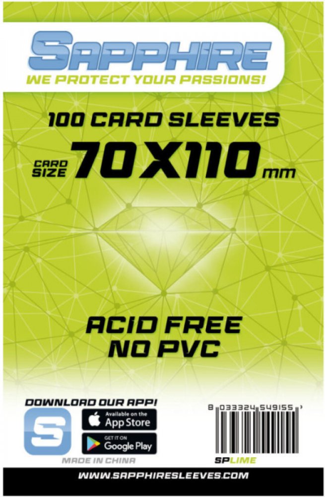Obaly na karty od firmy Sapphire jsou určeny pro karty o rozměrech 70 x 110 mm. Jsou vhodné např. na karty do hry Scythe. S nimi budou mít vaše karty tu správnou pevnou ochranu a navíc nebudou v obalech plavat. Šikovná věc pro ty, kdo si chtějí zachovat své hry na delší dobu. Tyto obaly jsou o 50% pevnější než běžné obaly např. Ultra Pro Economy nebo Blackfire.