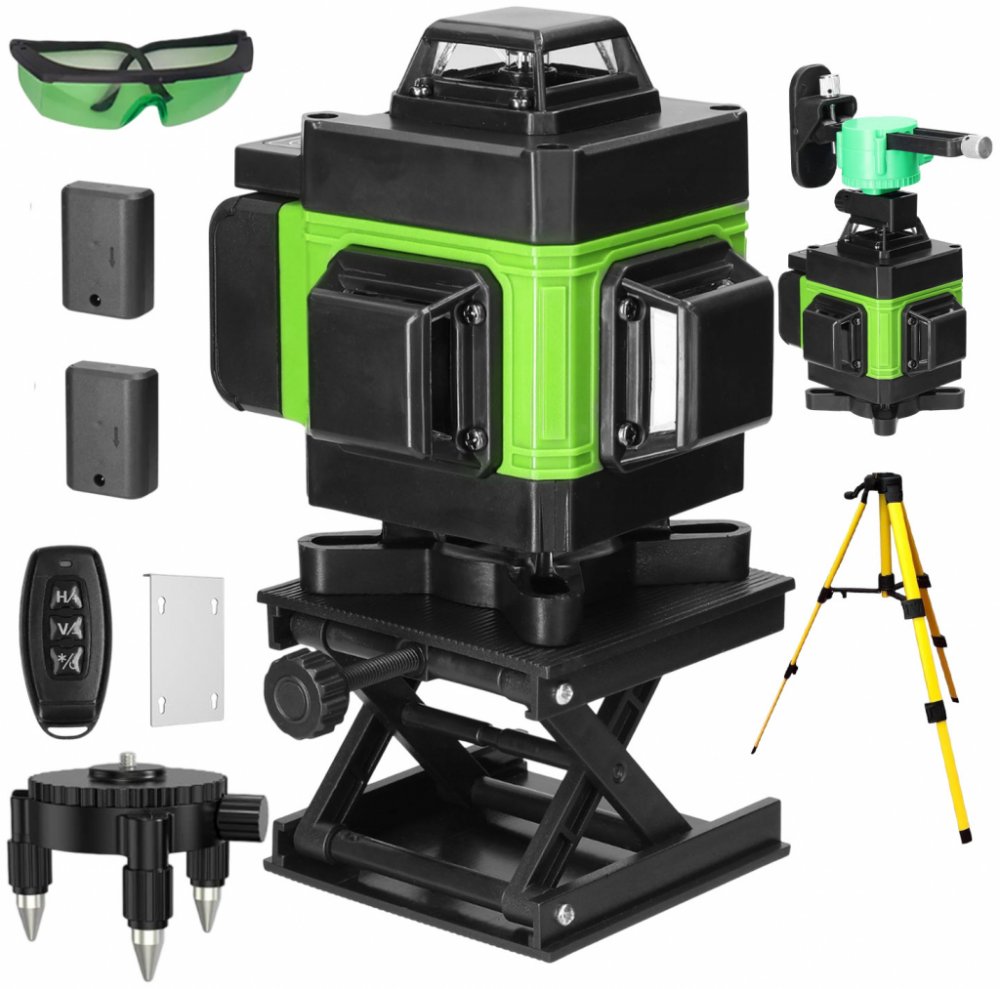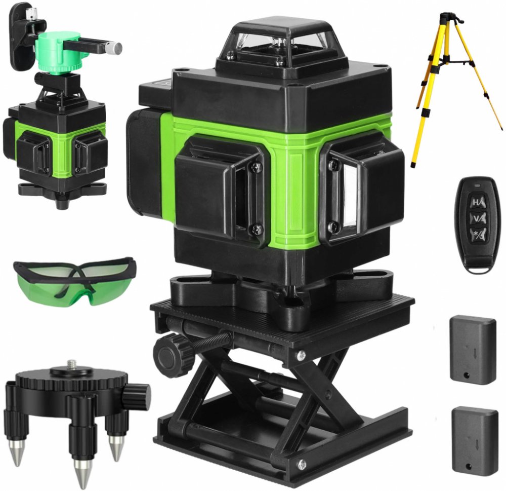 4x 360° zelené laserové paprsky (2x vertikální 360°, 2x horizontální 360°)