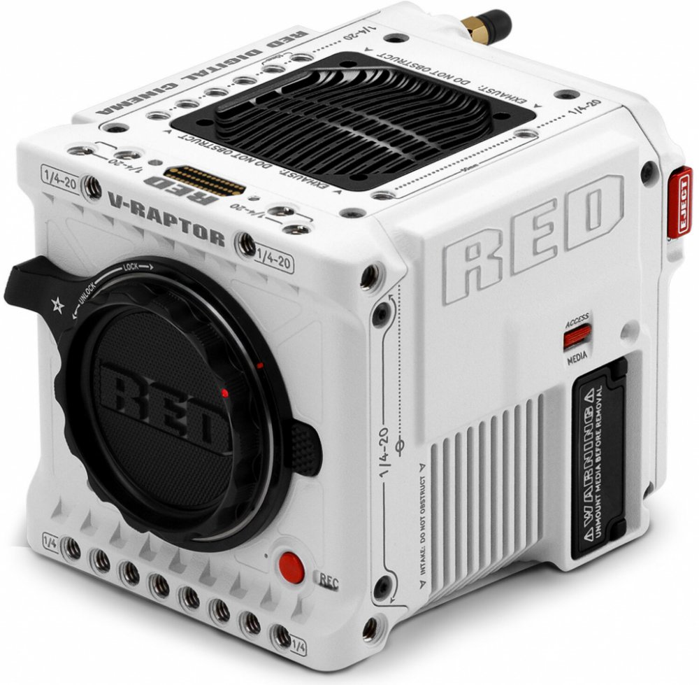 Nová (9/2021) vlajková loď kamerové flotily RED přináší novou platformu DSMC3 a nový 8K snímač dovolující natáčet v režimu 8K VV nebo 6K S35 a nabízející vysoké rychlosti vyčítání (více než dvojnásobné v porovnání s předchozí generací; až 600 fps v rozlišení 2K!) a dynamický rozsah přes 17 EV. Limitovaná edice v bílé barvě, pouze na zvláštní objednávku.Nová platforma DSMC3 nabízí lepší chlazení elektroniky a omezenou komaptibilitu s DSMC2 doplňky (např. KOMODO Outrigger Handle). Chystané příslušenství zahrnuje RED DSMC3 7.0 TOUCH monitor, nový DSMC3 Expander Module, horní montážní destičku příslušenství vč. madla, rychloupínací základní destičku kompatibilní se systémem Arca-Swiss, boční madla či audio redukci 5 pinů na 2x XLR konektory. V-RAPTOR zaznamenává do REDCODE RAW (16bitová RAW data), nabízí funkci pre-record a využívá technologii správy barev IPP2. Tělo váhy cca 1,8 kg je osazeno bajonetem Canon RF a 12G-SDI výstupy, nechybí ani Wi-Fi 2,4/5 GHz s možností streamování v režimu 1080p. Snímač: V-RAPTOR...