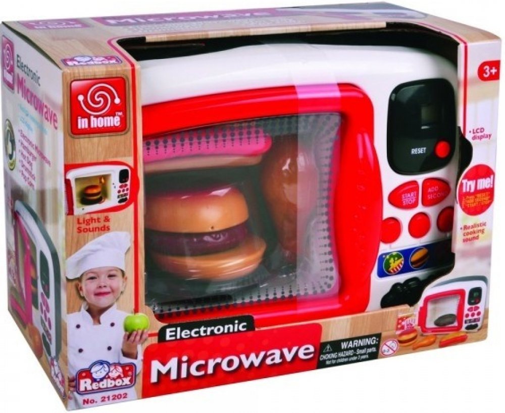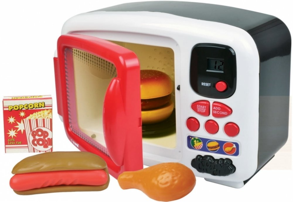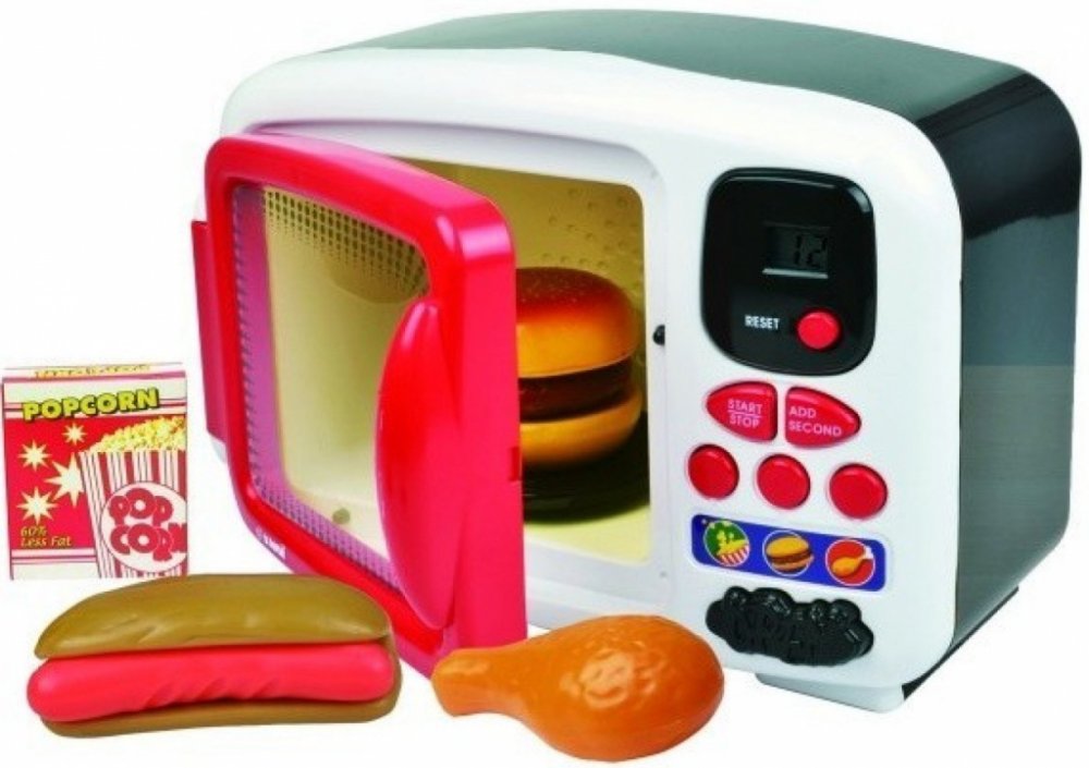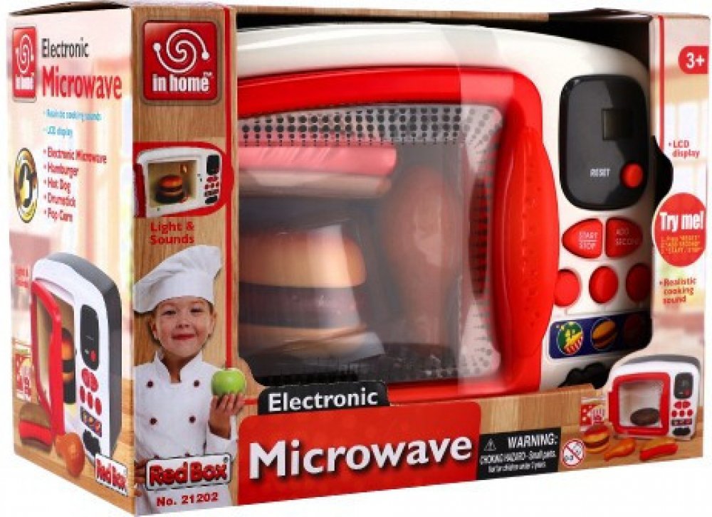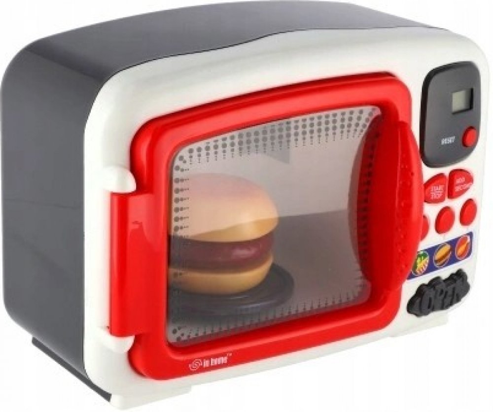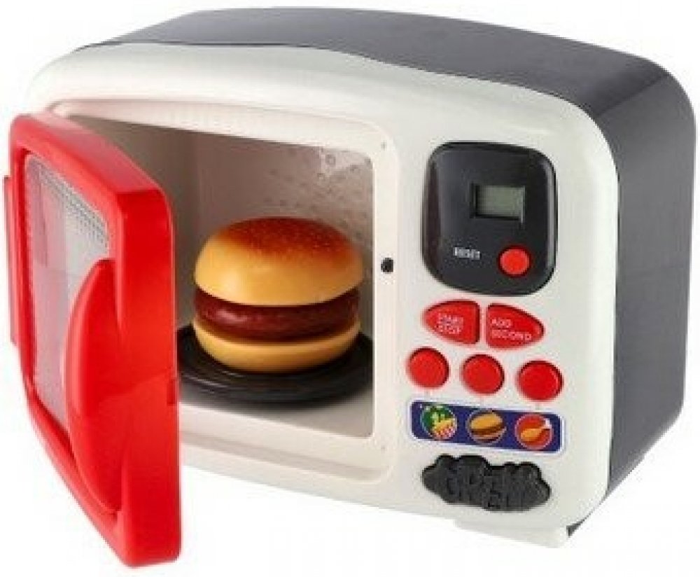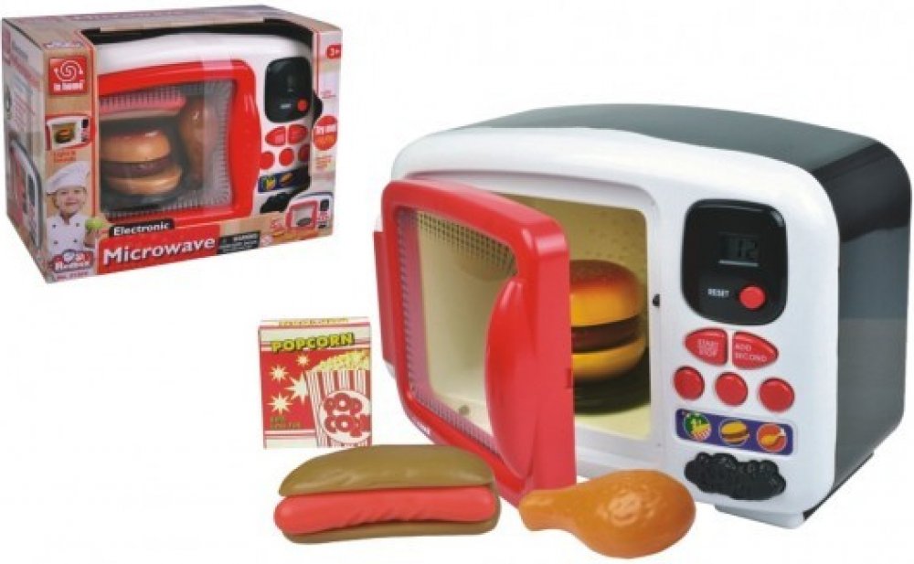Vybavte svou kuchyňku opravdu věrohodným zařízením. Tato mikrovlnná trouba je jako opravdová.Digitální display Vám ukáže dobu ohřevu, kterou si můžete nastavit (max. 20 sekund). Tři přednastavené programy pro ohřev hamburgeru, popcornu nebo masa Vám dokonce ulehčí práci. Nastaveno? Tak stačí zmáčknout Start a mikrovlnka začne pracovat. Talíř s potravinami se točí a vše můžete dobře sledovat díky světlu, které uvnitř svítí. Hukot při provozu jen umocňuje dojem opravdovosti. Před koncem Vás trouba upozorní pípáním a po skončení vydá ještě jeden tón. Ohřívání můžete také kdykoliv ukončit tlačítkem Stop ještě před koncem. Dvířka otevřete tlačítkem Open a mechanicky je zase zavřete. Mikrovlnná trouba má také bohaté příslušenství, abyste měli co ohřívat. Tak do toho! Vyzkoušejte si svou novou dokonalou mikrovlnnou troubu. Mikrovlnná trouba nesmí chybět v žádné kuchyňce malé kuchařky. V kuchyňce si mohou ohřívat hamburgr, kuřecí stehýnko, párek v rohlíku nebo si udělat popcorn. Vše je součástní balení.