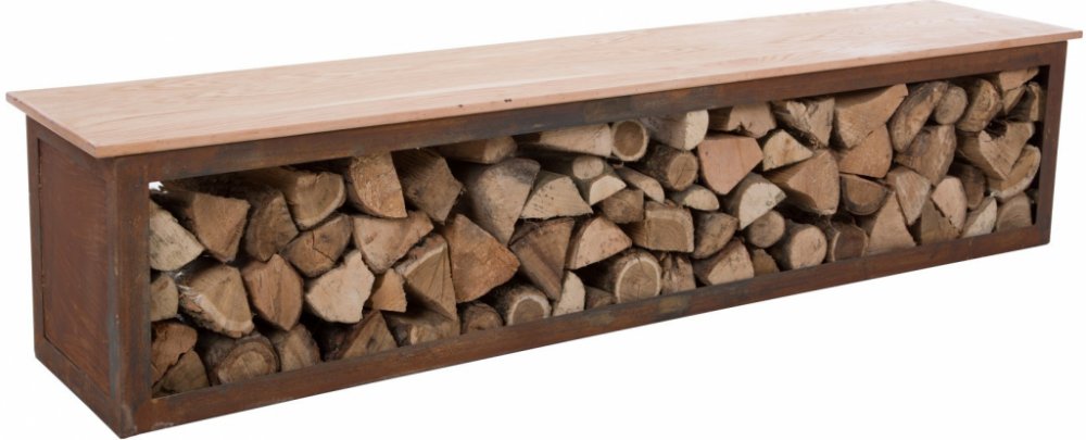 RedFire BENCH TYR stylový ocelový dřevník 120 cm lavice s úložným prostorem 88514