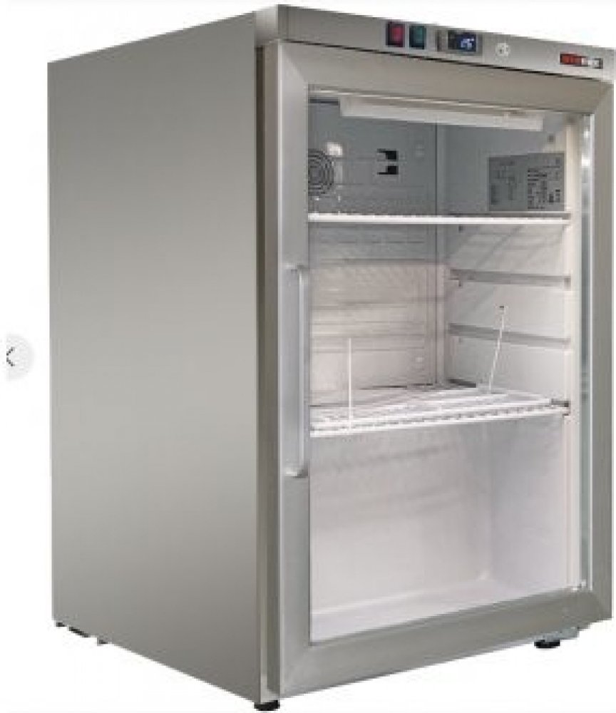 Zařízení je vybaveno třemi policemi – dvěma plnohodnotnými a jednou spodní poloviční, která je přizpůsobena umístění agregátu, což umožňuje maximální využití vnitřního prostoru. Prosklené dveře s vnitřním LED osvětlením usnadňují rychlou orientaci bez nutnosti častého otevírání, čímž pomáhají udržovat stálou teplotu uvnitř chladicí komory a přispívají k úspoře energie. Digitální ovládání zajišťuje přesnou regulaci teploty, zatímco robustní nerezové provedení se snadno udržuje v čistotě a dlouhodobě odolává náročnému provozu. Součástí je také zámek dveří pro bezpečné uskladnění obsahu.
