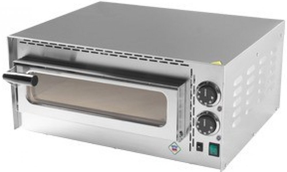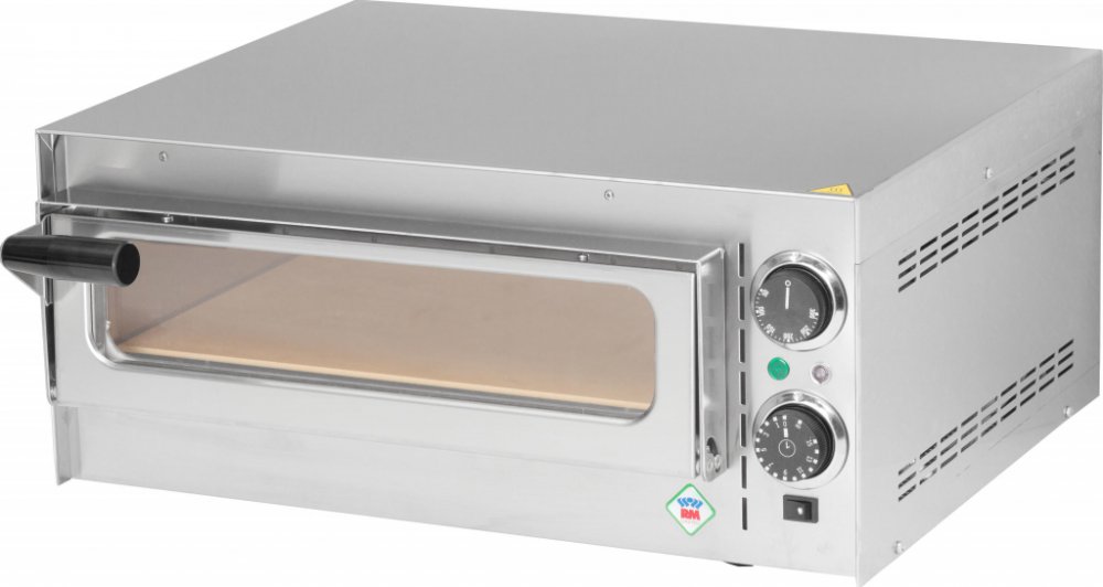 Pizza pec má spodní šamotové desky, prosklená dvířka, časovač 0-15 min., vnitřní osvětlení. Pizza pec je vybavena regulaci teploty v rozsahu 50 - 300°C.