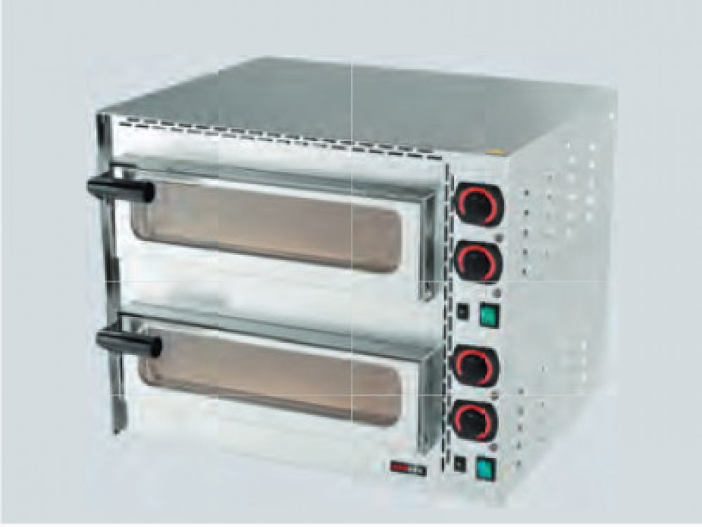 FP 68 R Pizza pec snack dvoupatrová je elektrická pizza pec, která má vnitřní velikost komory 2 x 410x370x90 mm. Hodí se pro 2 x průměr pizzy 35 cm.