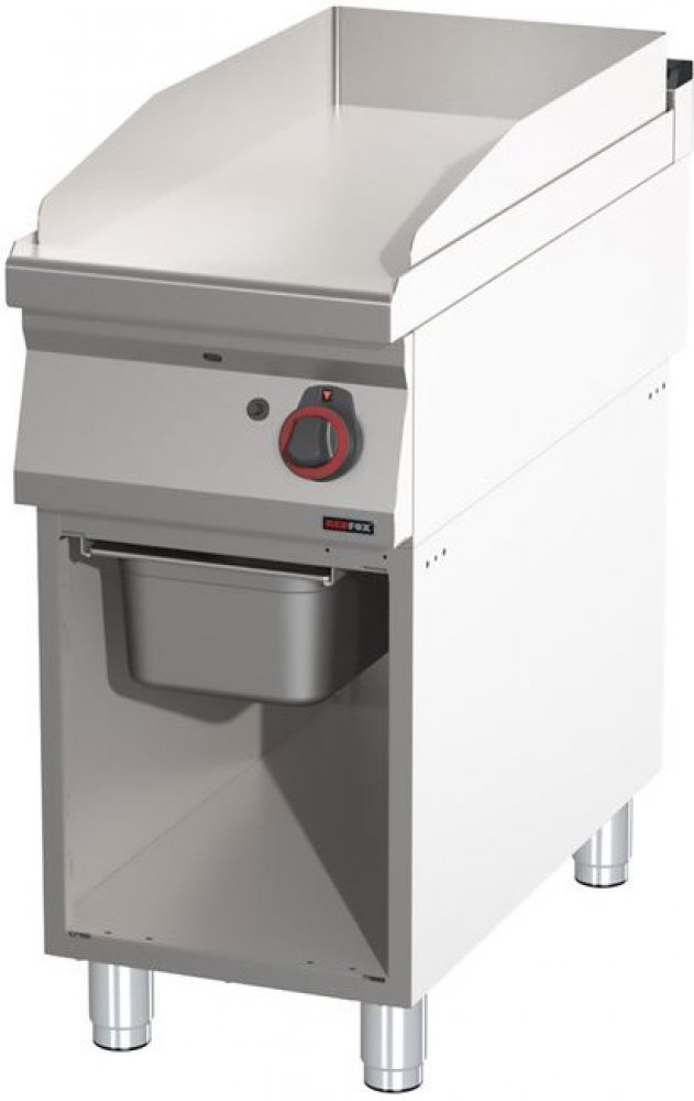Plynová grilovací deska FTH 90/40 G hladká, plotna z nerezové oceli o síle 15 mm zajišťuje vynikající vedení tepla, s podestavbou. Deska je vybavena kontrolkou chodu, vyhřátí a piezzo zapalováním. Prolisovaná vrchní deska zajišťuje komfortní údržbu a čištění. . Deska obsahuje zásuvku na odpadní tekutiny a 2x samostatné ovládáním plochy.