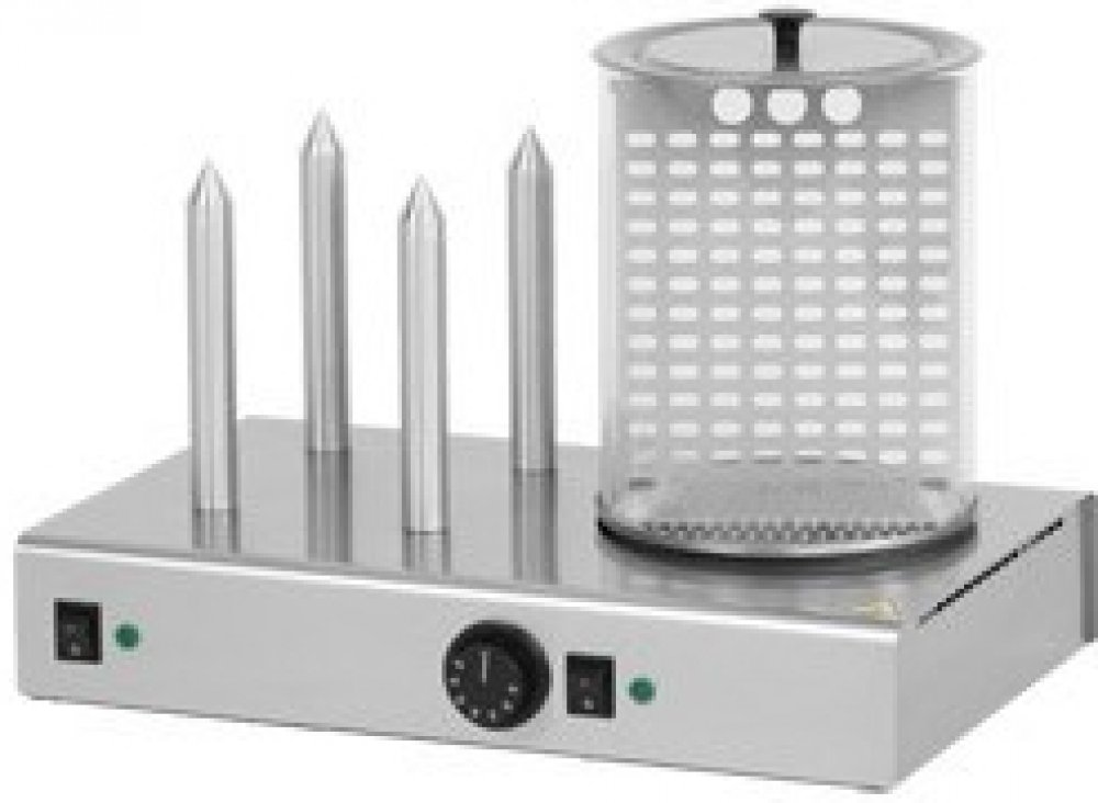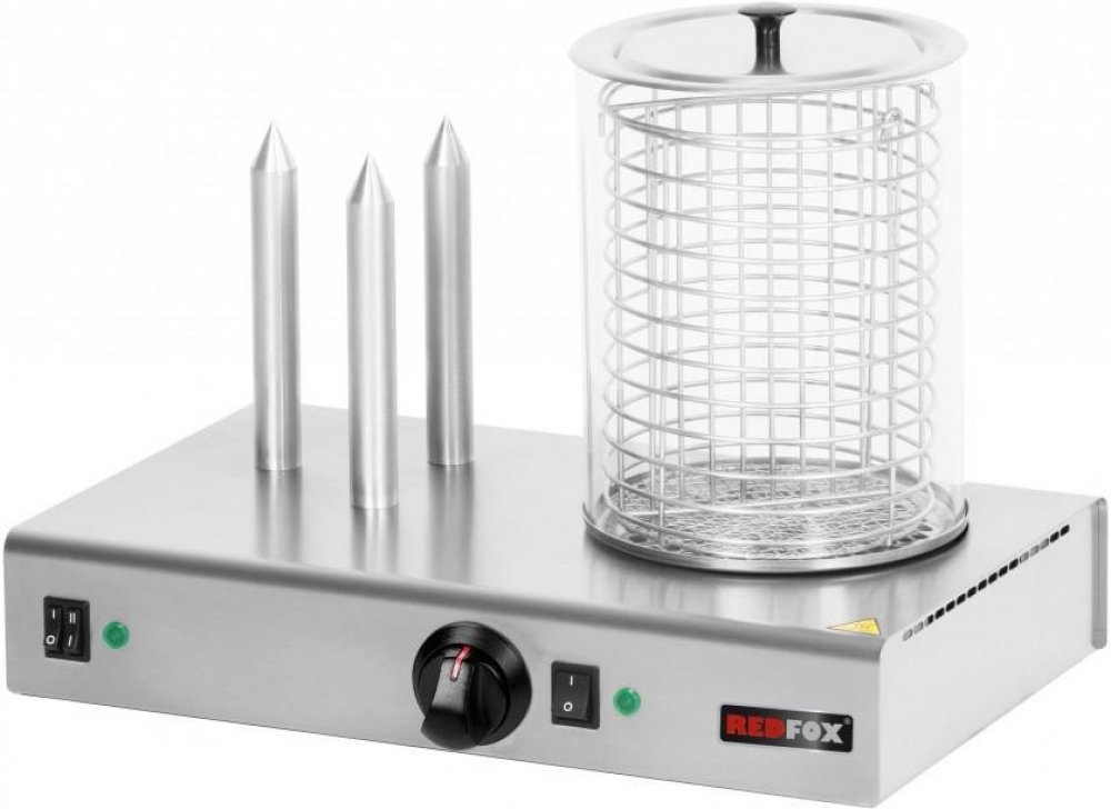 Hot-dogy jsou celonerezového provedení. Ohřívací trny pro ohřev rohlíků jsou vyrobeny z leštěného hliníku. Trny jsou našroubovány na hliníkové teplovodné desce, pod kterou je topné těleso. Hot-dogy jsou vyráběny v jednotrnovém, dvoutrnovém, třítrnovém a čtyřtrnovém provedení nebo jako třítrnový ohřívač rohlíků spolu s ohřevnou nádobkou na jedné základně či jako samostatná ohřevná nádobka. Skleněný válec je vybaven nerezovým separátorem. Separátor lze též nahradit nerezovým košíkem s dělící příčkou. Teplota plotýnky je regulovatelná pomocí termostatu. Trny i nádobka mají samostatné vypínače a kontrolky.