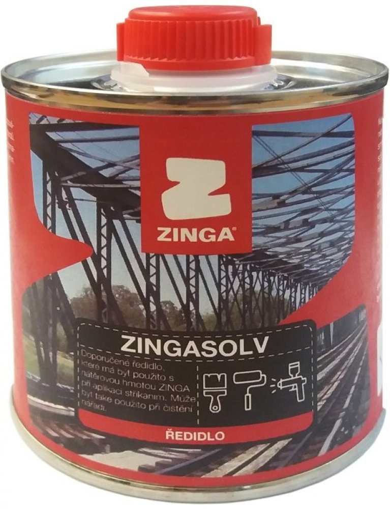 Ředidlo ZINGASOLV cca 5 - 7%, se používá na nátěrový systém ZINGA a na nátěry ALU ZM, ZINGALUFER a ZINGATARFREE v případě aplikace nástřikem. Využití i na očištění stříkací pistole od produktů ZINGA a ostatních nátěrů.