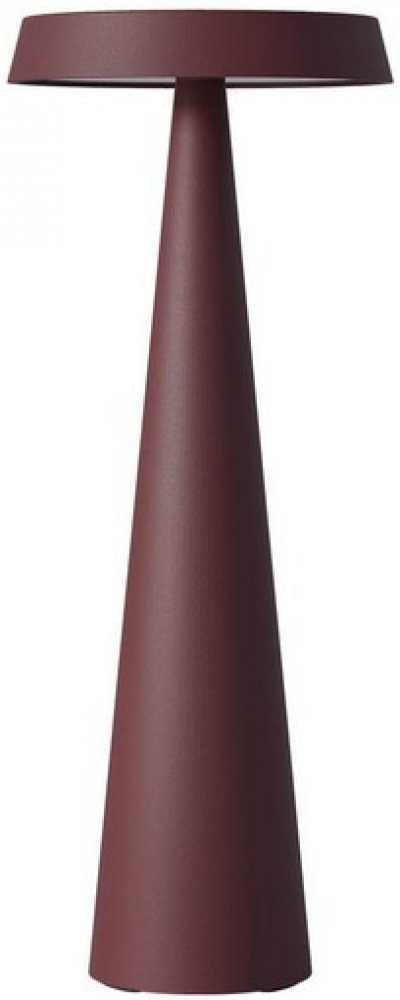 Venkovní stolní lampičká vybavená SMD LED diodami, dotykovým spínačem ON/OFF a dotykovým stmívačem, plynule stmívatelná v rozmezí 100 % - 5 %, s pamětí jasu a možností změny barevné teploty od 2700 K do 3000 K. Vybavena Li-ion baterií 18650, kapacita 4 400 mA, se systémem ochrany proti přetížení, zásuvkou micro USB a nabíjecí základnou s jedním kontaktem (součástí dodávky) 100 - 240 V, 50/60 Hz. Tělo z tlakově litého hliníku lakované v matné fialově červené barvě a průhledným polykarbonátovým difuzorem.