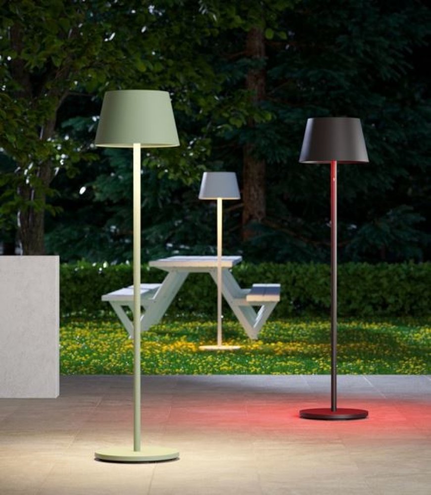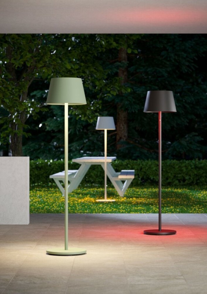 Venkovní stojací lampa vybavená LED diodami SMD a RGB, indikátorem stavu nabití baterie a 2 dotykovými spínači (s dotykovým senzorem): dotykovým stmívačem od 100 % do 5 % s pamětí jasu a CCT a dotykovým spínačem RGB s možností změny teploty barvy světla 2700K/3000K/4000K nebo nastavení požadované barvy (k dispozici je 7 barev). Vybaveno Li-ion baterií typu 18650, kapacita 13 200 mA, s ochranou pro...