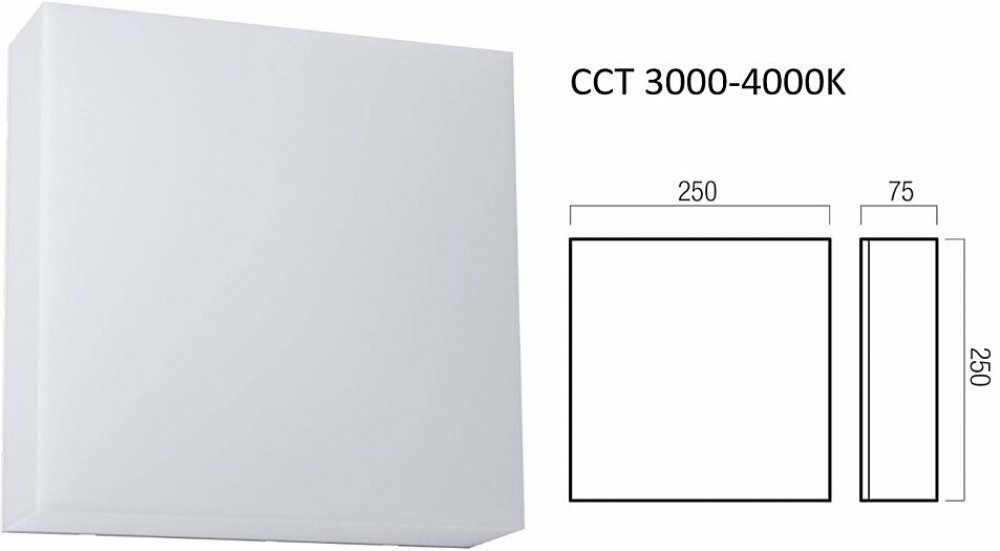 Venkovní LEDkové světlo svítí teplou bílou barvou 20W, použité LEDky SMD LED 2835 88 ks x 0,22W 2700K + 88 ks x 0,22W 3000K. Světlo je určené pro instalaci na stěnu nebo strop. Tato varianta 90777 měří 25x25cm. Kombinujte s osvětlením ve shodné sérii. Barvu světla 3000K nebo 4000K si vyberete před instalací svítidla, přepínačem na montuře.