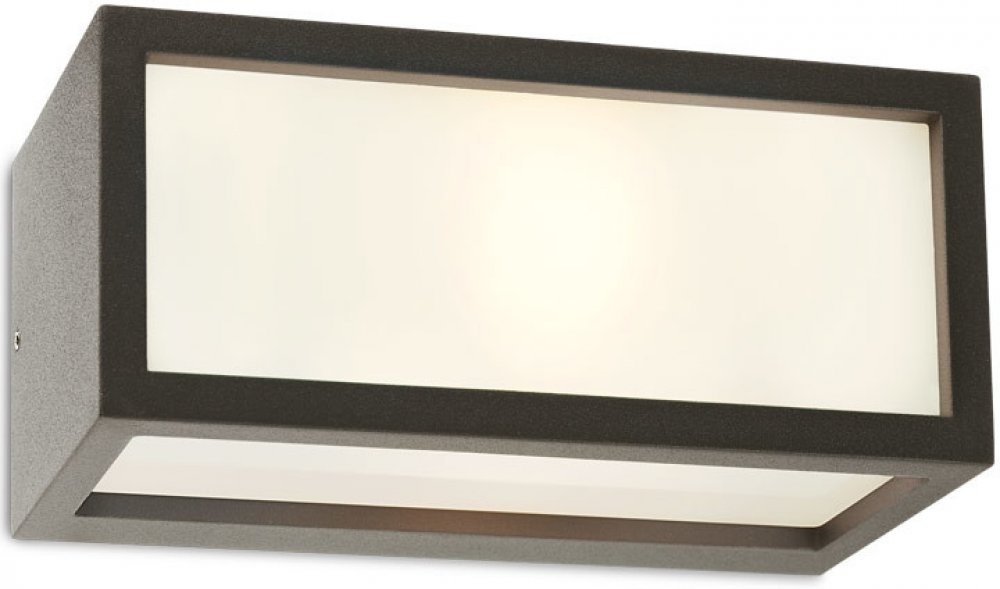BRICK 9896 REDO venkovní svítidlo. Maximální příkon 1x23W, patice E27. Napájení 230V. Výška 110mm, šířka 250 mm, hloubka 103 mm. Krytí IP54. Materiál: hliníková slitina v tmavě šedé barvě, saténový polykarbonátový difusor. Žárovka není součástí balení. Řada BRICK.