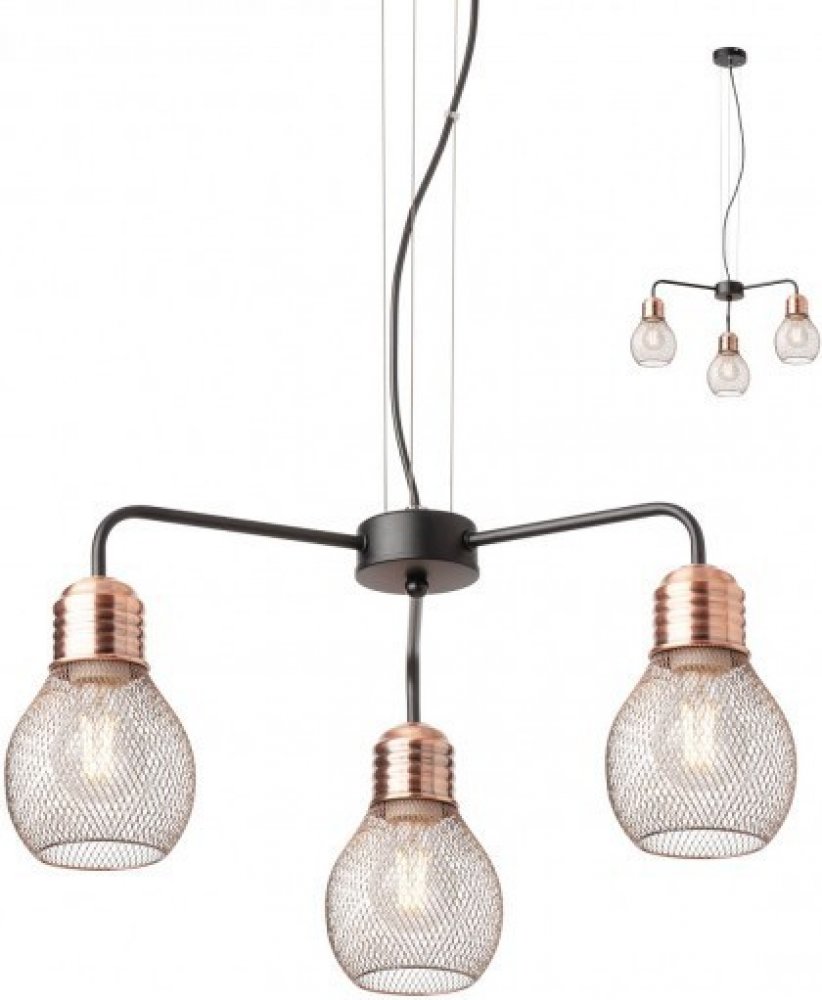 Závěsné interiérové ​​svítidlo, kovová struktura lakovaná v černé barvě se starožitným kovovým detailem, měděný kovový difuzor.