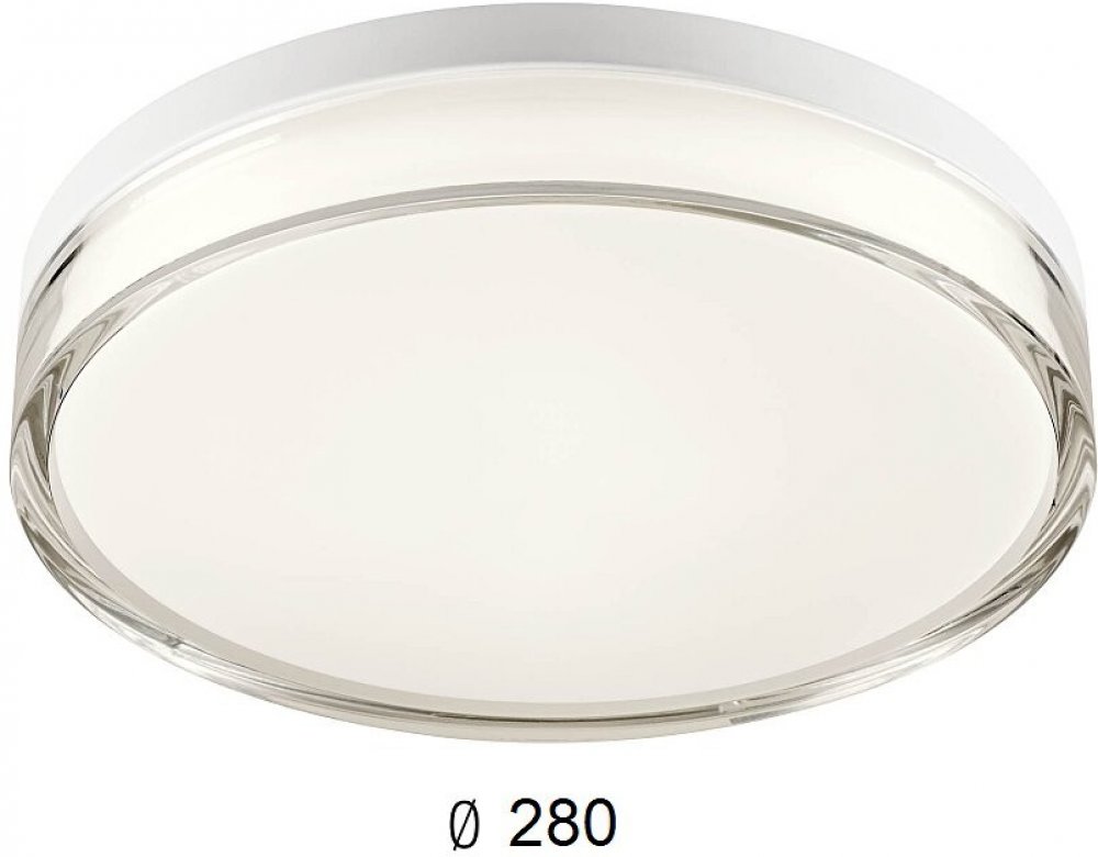 Stropní svítidlo do interiéru, chráněné proti vlhkosti, osazené LED diodami SMD, s možností volby teploty barvy světla, hliníková konstrukce lakovaná matně černou, bílou nebo chromovou barvou, a difuzor z PMMA lakovaný na vnitřní straně bíle a na vnější straně průhledný.